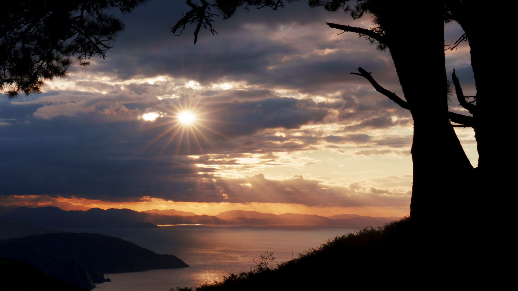 Sol del atardecer desde el monte Jaizkibel.